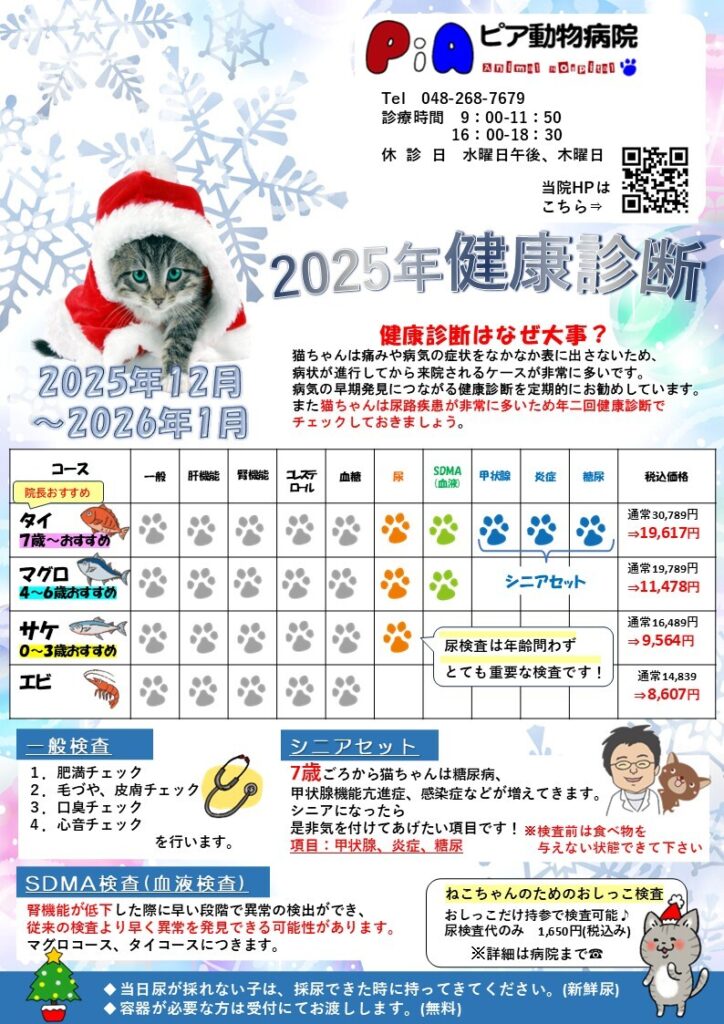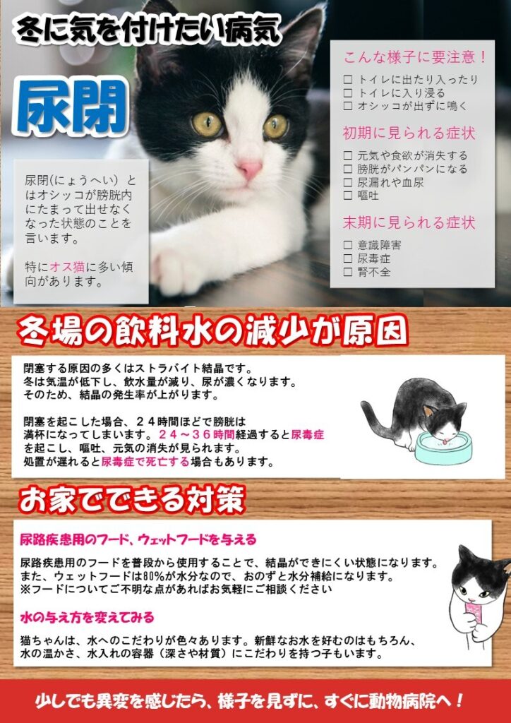 また猫ちゃんは尿路疾患が非常に多いため年二回健康診断でチェックしておきましょう。